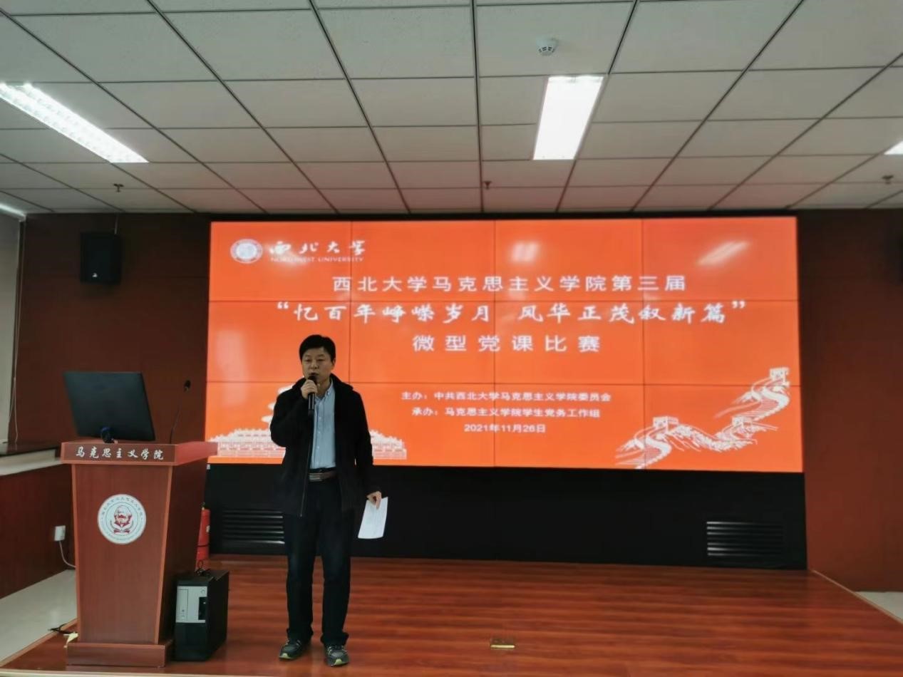 比赛结束后,王有红副教授进行了点评。他指出学校党委组织部每年支持学院党委举办微党课比赛,是对党员教育的高度重视,是对马院党建工作的大力支持。参赛选手在党课的选题、内容设计和讲课技巧等方面都进行了充分的思考和精心的准备,体现了马院学子的专业素养。他希望同学们在今后的讲课中进一步发挥学科专长,融入更多学理性内容,在内容设计上更具逻辑性、在用词上更加严谨,能讲出一堂更加精彩的党课。