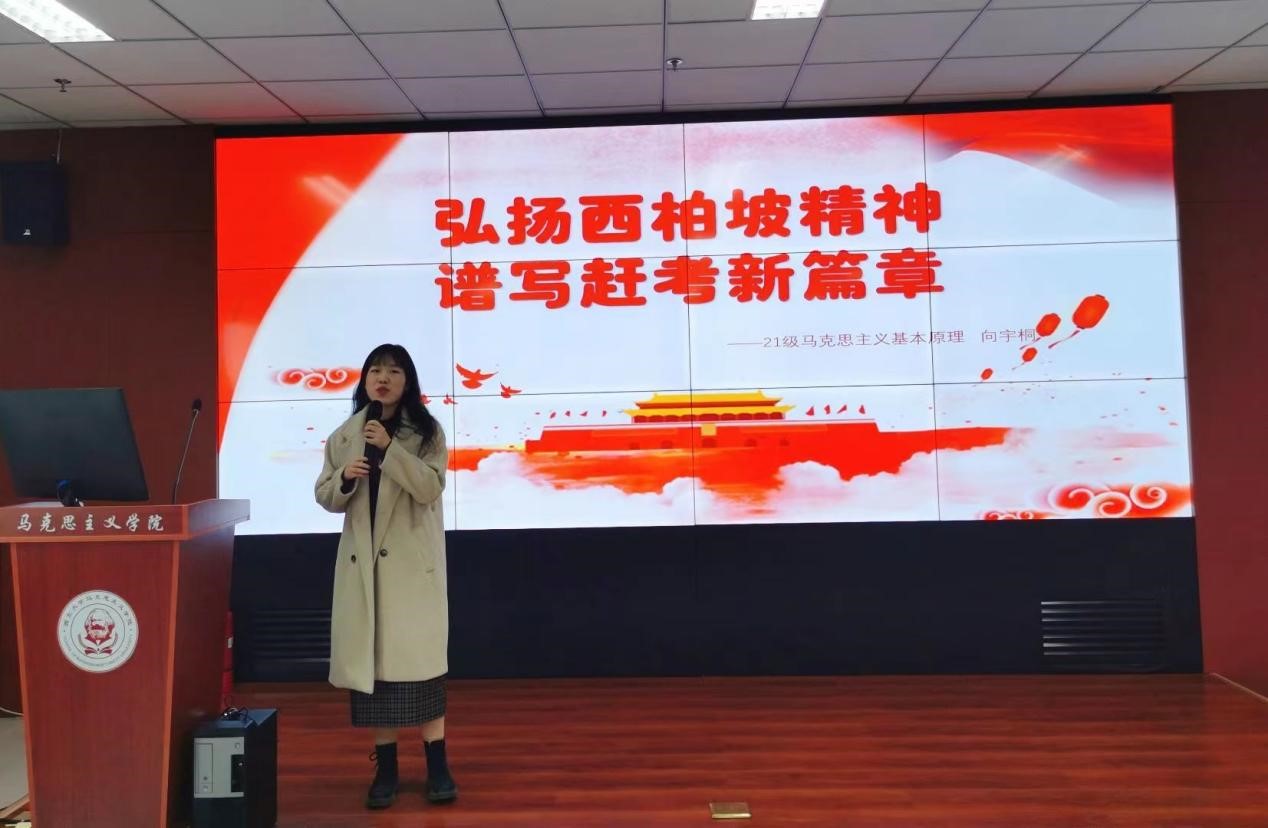 此次微党课比赛为学生党员搭建了良好的实践平台,通过参赛者生动讲述党史上的英雄人物和感人故事,让广大学子深刻感受到了中国共产党百年来的苦难与辉煌,体会到党百年奋斗取得伟大成就的来之不易。此次活动既是一次讲课比赛,更是一次对参赛者心灵的洗礼,进一步坚定了青年党员“听党话、跟党走”的理想信念,激发了马院青年勇担时代重任,投身时代洪流,为建设社会主义现代化国家不懈奋斗的强大动力。